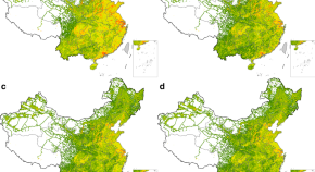 There lacks a spatially explicit mapping of global carbon footprint in China that considers both international and interprovincial trade. Here the authors map the carbon footprints of global regions in China and show the hotspots concentrated in key manufacturing hubs, including the Yangtze River Delta, Pearl River Delta, and North China Plain.