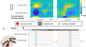 How seizure propagation occurs across cortical layers in humans is not fully understood. Here the authors use intracerebral laminar electrodes (capable of recording the six layers of the cortex) during pre-surgical evaluations, and identify a signature of the area responsible for seizures characterized by pathological activities in the granular and infragranular layers.