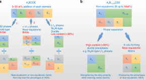 High entropy alloys usually emphasize equiatomic compositions, which restrict the compositions available to induce strengthening via precipitation. Here the authors use spinodal decomposition in a five-element alloy to obtain high content nanophases and the highest tensile strength reported to date.