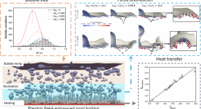 The electric field is recognized to be effective in enhancing pool boiling, with applications in cooling of power electronics, heat exchangers, and thermal management systems, etc. This study conducts large-scale three-dimensional lattice Boltzmann simulations of electric field–enhanced pool boiling of leaky dielectric fluids to explore bubble dynamics and the underlying mechanisms of heat transfer enhancement.