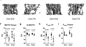 Comparison of the bone phenotypes of hyperthyroid versus euthyroid bone cell-specific conditional knockout mice suggests that the osteoblastic, but not osteoclast, BMP receptor BMPR1A is a main driver of hyperthyroidism-associated bone disease.