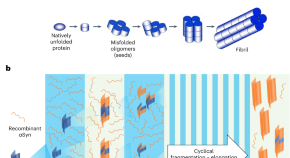 The amplification of misfolded alpha-synuclein aggregates in vitro can be used for the detection, via fluorescent dyes, of pathologic amyloids in cerebrospinal fluid samples from patients affected by Parkinson’s disease, dementia with Lewy bodies or multiple-system atrophy.
