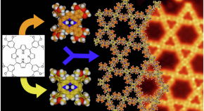 Understanding the emergence of complexity during self-assembly of simple molecular building blocks is key for advances in synthetic control. Here, the authors identify and characterize the spontaneous formation of a complex Kagome lattice of 5,10,15,20-tetrakis(3,4,5- trimethoxyphenyl)porphyrin molecules on Ag(111) substrate based on two unique site-selective conformational adaptations, and discuss the role of the adsorbate-adsorbent interface in driving the system towards thermodynamic equilibrium.