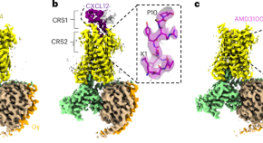 • Here, cryo-electron microscopy structures reveal how the chemokine receptor CXCR4 oligomerizes and how it is regulated by its physiological ligand CXCL12, the small-molecule drug AMD3100 and the monoclonal antibody REGN7663.
