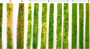 We build a polyploid reference genome for hybrid sugarcane cultivar R570, improving on its current ‘mosaic monoploid’ representation, enabling fine-grain description of genome architecture and the exploration of candidate genes underlying the Bru1 brown rust resistance locus.