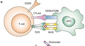 Targeting the co-stimulatory signals that accompany antigen-derived signals involved in the activation of T cells represents a possible therapeutic approach for patients with rheumatoid arthritis. This Review focuses on abatacept, a fusion protein that interrupts the co-stimulatory signal mediated through the CD28–CD80/CD86 pathway, and discusses its proposed mechanism of action and outlines data from clinical trials in rheumatoid arthritis.
