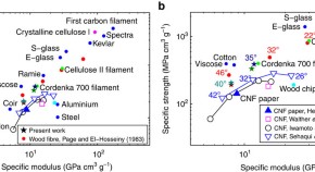 Nanofibrils isolated from wood have potential as building blocks for materials, but in order to obtain high performance, control of the assembly process is needed. Here, the authors report a method to process nanofibrils using microfluidics, giving filaments with aligned fibrils and high strength.