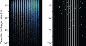 Lasers are recognized for coherent light emission, the onset of which is reflected in a change in photon statistics; but, until now, attempts to directly measure correlations in the individual photon emission events of semiconductor lasers have been unsuccessful. By using a streak camera technique with sufficient time resolution, the dynamical evolution of correlations between individual photon emission events is now demonstrated.