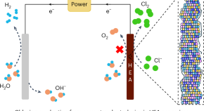 • Chlorine electrosynthesis from seawater is limited by poor selectivity and stability under industrial-scale conditions. Here atomic-step-enriched ultrafine high-entropy alloy nanowires enable highly efficient chlorine evolution at 10 kA m−2 for over 5,500 h through dynamic Pt–O active sites, reducing electricity consumption and feedstock costs for next-generation chlor-alkali processes.