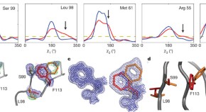 X-ray crystallography and NMR spectroscopy are two powerful tools to determine the three-dimensional structures and characterize the dynamic properties of proteins. The two methods are now combined to structurally unravel interconverting substrates of a human proline isomerase. Crystallographic approaches are used to define minor protein conformations and, combined with NMR analysis, to show how collective motions contribute to the catalytic power of an enzyme.