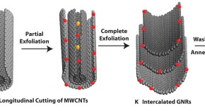 A rod-shaped metal–organic framework can be converted into one-dimensional carbon nanorods through a catalyst-free thermal transformation in which the morphology of the material is preserved. The as-synthesized nanorods can be unravelled to form 2–6-layer graphene nanoribbons by ultrasonication in the presence of KOH, followed by thermal activation.