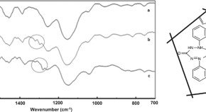 Hg(II)-imprinted polymers were analyzed by Fourier transform infrared spectroscopy. The spectrum of IIP2, prepared using diphenylcarbazone, showed two additional peaks attributed to the stretching of nitrogen bonded to the aromatic carbon of diphenylcarbazone, not found in IIP1. Comparing leached and unleached IIP2, the peak shape of C=N (1636.3 cm−1) in unleached IIP2 was drastically changed emphasizing the interaction of mercury with nitrogen on 4VP. Moreover, a slight shift of the additional peaks was observed. These results show the possible interaction of mercury ions both with the nitrogen bonded to the aromatic carbon of diphenylcarbazone and the nitrogen of the monomer.