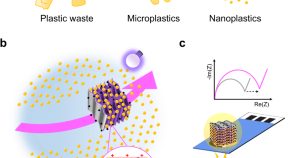 • Nanoplastic water pollution represents an increasing concern. Here, photogravitactic MXene-derived microrobots are programmed to trap nanoplastics in the layered structure and magnetically transfer them to low-cost electrodes for further detection.