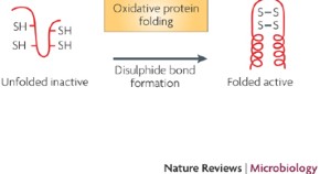 Formation of disulphide bonds between cysteine residues is key for the stability and activity of a range of exported bacterial proteins. Disulphide bond formation occurs during the oxidative protein folding processes that are catalysed by the DSB protein family. In this article, Heras and colleagues review oxidative folding pathways inEscherichia coliK12 and other bacteria and their impact on pathogenesis.