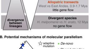 Here, the authors study adaptation to altitude in 518 whole genomes from two species of tropical butterflies. They find repeated genetic differentiation within species, little molecular parallelism between these species, and introgression from closely related species, concluding that standing genetic variation promotes parallel local adaptation.