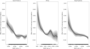 • Global tree restoration could cause substantial and regionally variable changes in water availability, according to an ensemble of Budyko models and moisture recycling data.