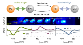 Molecular catalysts for artificial photosynthesis can break down during operation and stop working, whereas biological photosynthesis uses an enzymatic repair strategy to maintain function. Now, the degradation pathway of a hydrogen-evolving RuPt photocatalyst has been identified, enabling the development of an active repair strategy involving the use of 1O2 to reoxidize the deactivated bridging ligand.