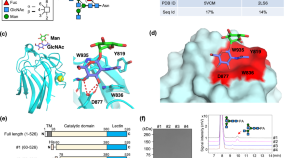 The activity of glycosyltransferase GnT-V correlates with cancer malignancy and poor prognosis but its mechanism of action is poorly understood. Here, the authors solve crystal structures of free and substrate analog-bound GnT-V, providing insights into its catalytic mechanism and a basis for GnT-V inhibition.