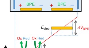 Alternating current bipolar electropolymerization of 3,4-ethylenedioxythiophene (EDOT) was performed in the presence of benzoquinone in tetrabutylammonium perchlorate/acetonitrile. The obtained poly(3,4-ethylenedioxythiophene) (PEDOT) was deposited at both ends of bipolar electrode (BPE) gold wires in a linear fiber form (φ=ca. 30 μm) owing to limited accessibility of the EDOT monomer to the active site of BPEs in a micro-space. The linear growth of the PEDOT microfibers was demonstrated to be useful for application in circuit wiring.