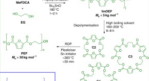 The synthesis of polyethylene furanoate, a promising renewable resource-based bioplastic, still has challenges. Here the authors show that bottle-grade polyethylene furanoate can be obtained within minutes from ring-opening polymerisation of its cyclic oligomers, thereby avoiding degradation and discolouration.