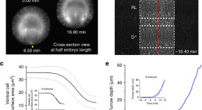 It is unclear how cell movements coordinate ventral furrow formation at the start of gastrulation in flies. Here, using multiview light-sheet microscopy and cell immobilization, Rauzi et al.observe differential epithelial cell movements, which contribute to the dynamics and timing of mesoderm internalization.