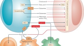 The metabolic conditions in tumours can result in phenotypic reprogramming of non-tumour cells, including immune cells, in the tumour microenvironment. This Review provides an overview of the pathways of cancer metabolism that intersect with immunometabolism, typically resulting in immunosuppression, with a focus on how these metabolic pathways could be targeted in order to enhance anticancer immunity and immunotherapy.