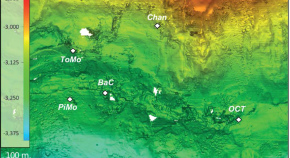 The sea floor at the easternmost Southwest Indian mid-ocean ridge is smooth, unlike that at other mid-ocean ridges. Sonar imaging and analysis of rock samples show that the sea floor here is composed almost entirely of sea-water-altered mantle rocks that have been brought to the surface by large faults on both sides of the ridge axis over the past 11 million years.