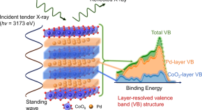 PdCoO2 belongs to a class of materials where both weakly and strongly correlated electrons co-exist side-by-side in different layers of the crystal structure. Here, the authors investigate PdCoO2 using standing wave photoemission spectroscopy and many-body calculations reporting layer-specific details about the electronic structure.