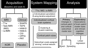 This mega-analysis of brain resting-state functional connectivity in young individuals with major depressive disorder scanned at six sites across four countries identified hub regions of the attentional and default mode networks as predictors of depression severity.