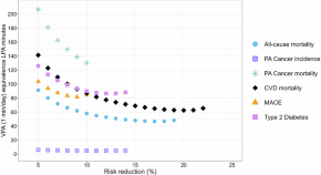 • Benefits on health have been found to vary across different levels of physical activity (PA) for chronic conditions including cancer. Here the authors report that each minute of vigorous intensity PA is equivalent to various minutes of moderate and light PA in terms of all-cause, cardiometabolic disease and cancer mortality outcomes in a device-based population.