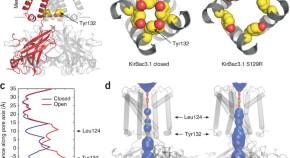 • KirBac channels are the bacterial homologs of mammalian inwardly rectifying potassium (Kir) channels. All available structures are closed at the helix bundle crossing, but the crystal structure of an open-state KirBac channel now indicates how opening of the primary activation gate may be physically coupled to a rotational twist in the cytoplasmic domain.