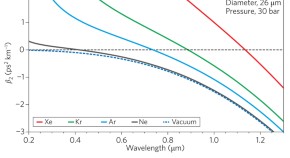Hollow-core photonic crystal fibres are attractive because they exhibit pressure-adjustable normal or anomalous dispersion, low-loss guidance, very low nonlinearity and high damage threshold. This Review overviews nonlinear optical phenomena in gas-filled, hollow-core photonic crystal fibres that may lead to a new generation of versatile and efficient pulse-compression devices and gas-based light sources.