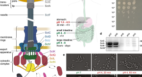 • Many bacterial pathogens use a type III secretion system (T3SS) to inject effector proteins into host cells. Here, Wimmi et al. show that the external pH regulates the assembly of T3SS cytosolic components in intestinal pathogens, thus preventing T3SS activity in the stomach and allowing T3SS reactivation in the intestine.