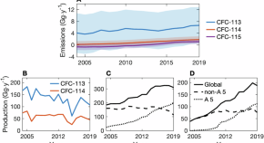 The production of chlorofluorocarbons (CFC) was phased-out under the Montreal, but renewed emissions of CFC-11 have been reported recently. Here, the authors present a joint analysis of multiple factors and find that emissions of CFC-11, but also CFC-12 and CFC-113 are higher than expected, indicating renewed emissions.
