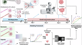 Meitham Amereh and colleagues report a hybrid discrete-continuum model to predict the cancerous growth, invasion, and treatment response of glioblastoma tumours. Their in-silico model uses metabolic data from a biomimetic two-dimensional in-vitro cancer model to predict three-dimensional behaviour of in-vitro human glioblastoma.