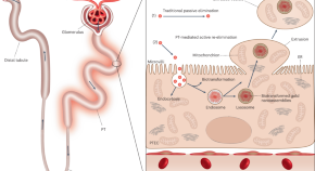 Interactions of nanoparticles with the kidneys affect their transport, clearance, targeting, therapeutic efficacy and biosafety in the body. This Review discusses nano–bio interactions of nanoparticles in the kidneys and highlights their potential for the detection and treatment of disease.