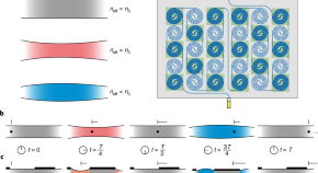 • High-amplitude optical phase modulation has been challenging to achieve in nanophotonic integrated structures. Coherently combining multiple optomechanical modulators on a nanophotonic chip offers an approach to address this challenge.