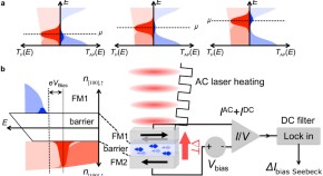 The combined magnetic and thermoelectric properties of nanostructures have recently attracted considerable attention. It is now demonstrated that the Seebeck coefficient in a magnetic tunnelling junction is strongly dependent on the magnetic configuration.