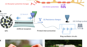 • Spike-based sensing offers the potential to lower power consumption and enable edge computing. Here, the authors fabricate a bio-inspired strain sensor using hybrid 3D printing enabled by a quantum tunneling composite with a large strain range.