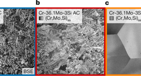 • A single-phase chromium–molybdenum–silicon alloy is described that exhibits compression ductility at room temperature as well as resistance to oxidation, pesting, nitridation and scale spallation at temperatures up to at least 1,100 °C.