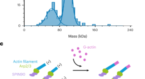 • Liu et al. show that SPIN90 dimerizes and binds two Arp2/3 complexes to nucleate two bidirectional actin filaments and the dimerization domain is conserved in multicellular animals, suggesting that the mechanism of bidirectional actin filament nucleation is conserved.