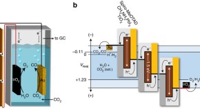 The electrochemical reduction of carbon dioxide to propylene requires multiple C–C coupling steps and the transfer of 18 electrons, posing kinetic and thermodynamic barriers. Now the electrosynthesis of propylene from carbon dioxide using copper nanocrystals has been demonstrated, with analysis revealing that the key step for its formation is probably the coupling between carbon dioxide or carboxyl with intermediates involved in the ethylene pathway.