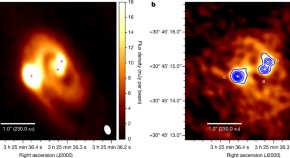 High-resolution radio imaging of the γ-ray-emitting nova V959 Mon, hosted by a white dwarf and its binary companion, shows that gaseous ejecta are expelled along the poles as a wind from the white dwarf, that denser material drifts out along the equatorial plane, propelled by orbital motion, and that γ-ray production occurs at the interface between these polar and equatorial regions.