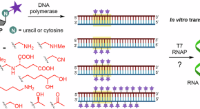 DNA modifications on pyrimidine nucleobases play diverse roles in biology such as protection of bacteriophage DNA from enzymatic cleavage, however, their role in the regulation of transcription is underexplored. Here, the authors design and synthesize a series of 5-substituted pyrimidine 2ʹ-deoxyribonucleoside triphosphates and employ them for the synthesis of diverse DNA templates, showing their regulation on in vitro transcription with T7 RNA polymerase.