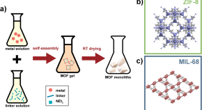 Mechanical characterizations of metal-organic framework monoliths are often overlooked. Here, the stress-strain behaviour of ZIF-8 and MIL-68 monoliths was investigated with flat punch nanoindentation, micropillar compression and Raman microspectroscopy.