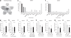 A complex interplay of various backgrounds and conditions determines the body fat levels of individuals. Here, the authors identify HSP47 as a pivotal determinant of body adiposity which is abundantly expressed in fat tissue and influenced by factors such as diet, exercise, hormones, and genetics.