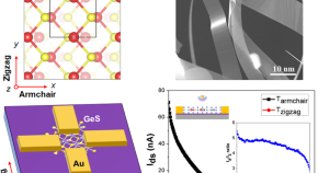 Two-dimensional distorted orthorhombic GeS microribbons has been synthesized applying vapor-liquid-solid and vapor-solid mechanism-based chemical vapor transport. Polarized Raman and photoluminescence characterizations show the significantly angle-dependent intensity and anisotropic optical properties. Additionally, we probed the anisotropic electric properties by fabricating back-gate cross-shaped field effect transistors. In-plane direct current measurement demonstrated the charge carrier transport anisotropy and its anisotropic current ratio can be linearly adjusted by changing the gate voltage under dark and illumination conditions.