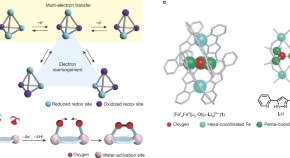 A complex containing five atoms of iron is shown to be a highly efficient and robust water oxidation catalyst owing to the presence of redox flexibility, which enables charge accumulation and electron transfer, and the presence of adjacent active sites that enables intramolecular O–O bond formation.