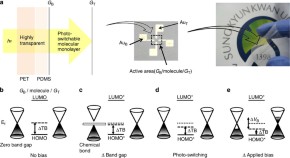The realization of molecular monolayers with graphene electrodes may allow for superior flexible, transparent and stable electronics. Here, a photo-switchable molecular monolayer device is demonstrated, which has one side physically attached, and the other chemically bonded, to graphene.