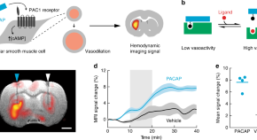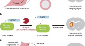 The vasculature produces strong endogenous contrast in magnetic resonance imaging (MRI). Here Desai et al. report genetically encoded imaging probes derived from the vasodilator, calcitonin gene-related peptide, which allows visualization of molecular events via haemodynamic changes in optical imaging or MRI.